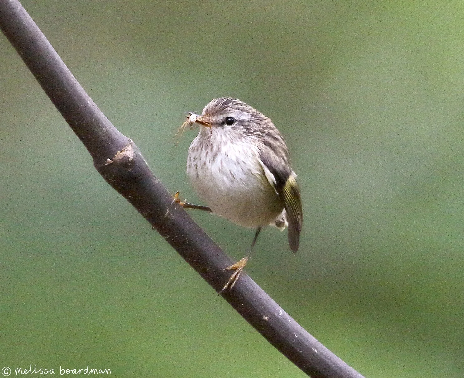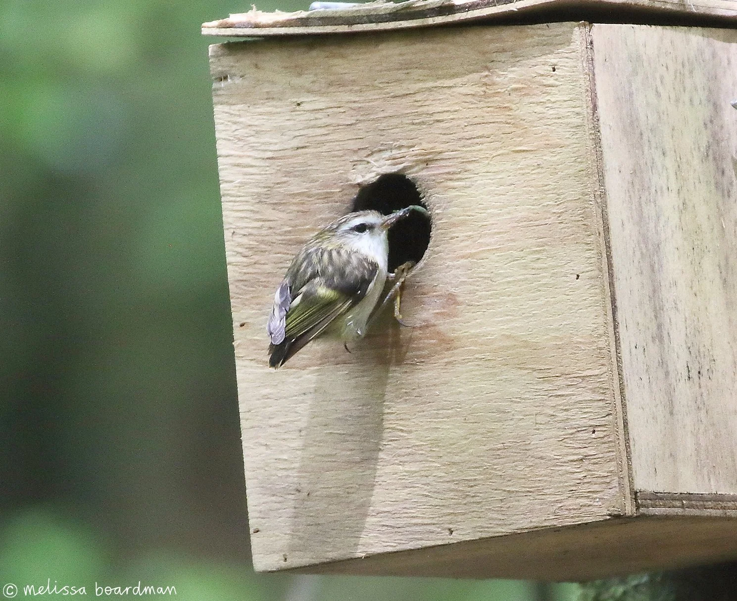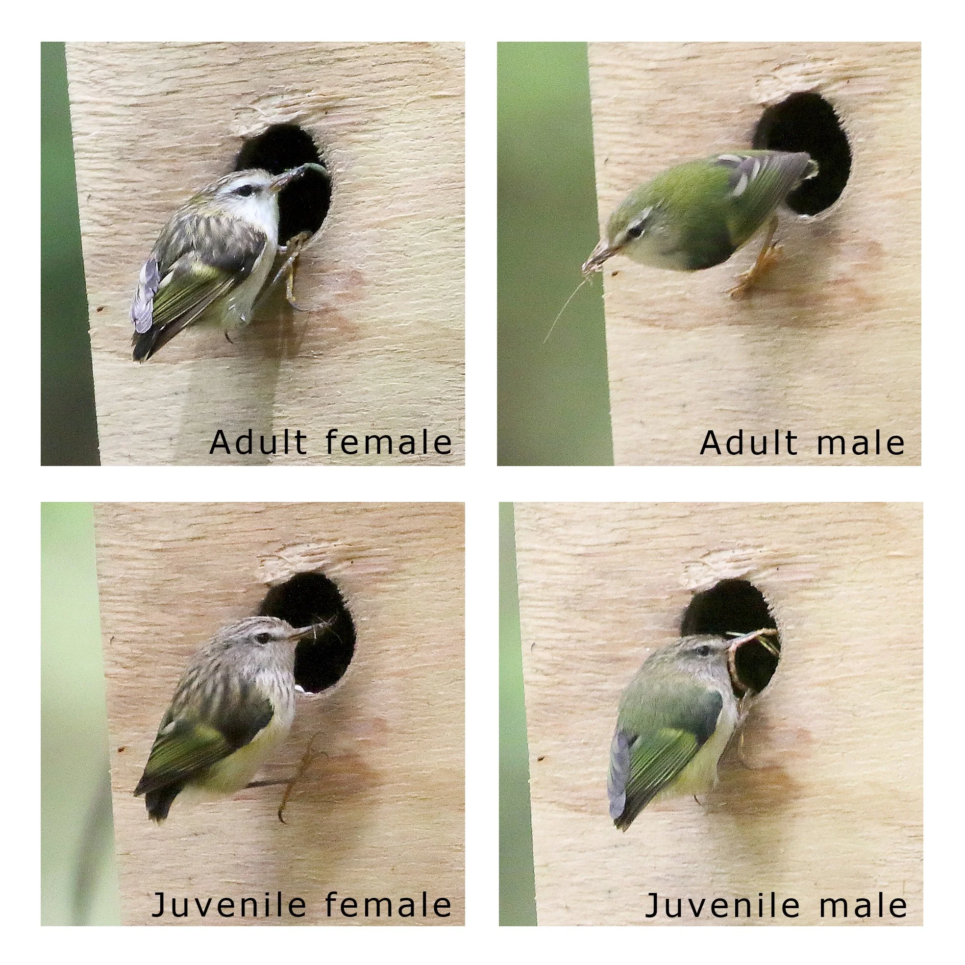 Now, back at Pūkaha I identified one adult female and one adult male taking food to their nestlings inside the nestbox, pretty standard parental behaviour. Then, I noticed a juvenile male titipounamu was calmly foraging near the nestbox. This piqued my interest, as from my experience with the titipounamu at Zealandia, any other bird near an active nestbox would be immediately chased away by protective parents. Curious, I stood further back and watched the activity from a safe distance without disturbing the birds so I could watch this unfold naturally.